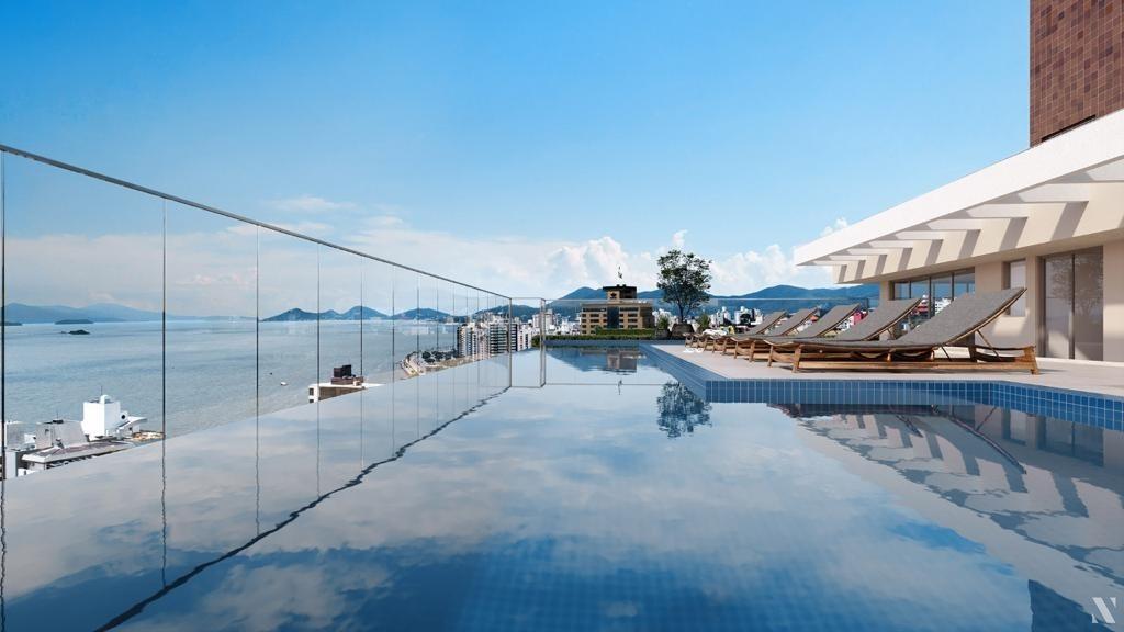 - informações complementares: Apartamento com face principal leste e vista parcial para o mar. Piso porcelanato na área social e vinílico nos dormitórios. Sacada com bancada e pia. Infraestrutura para ar condicionado do tipo split na sala e dormitórios. Estrutura para cabeamento de internet e TV. Infraestrutura para água quente e aquecimento por aquecedor de passagem. Persianas com acionamento elétrico nos dormitórios. Medidores individuais de água e gás.