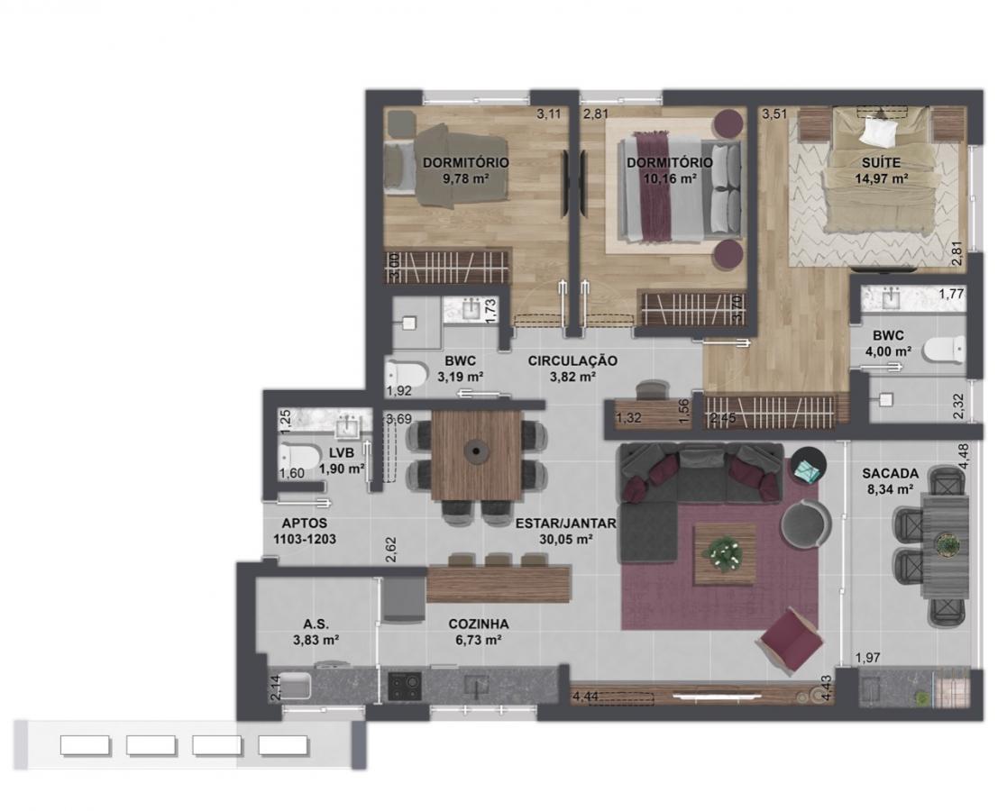 Área Privativa117m²